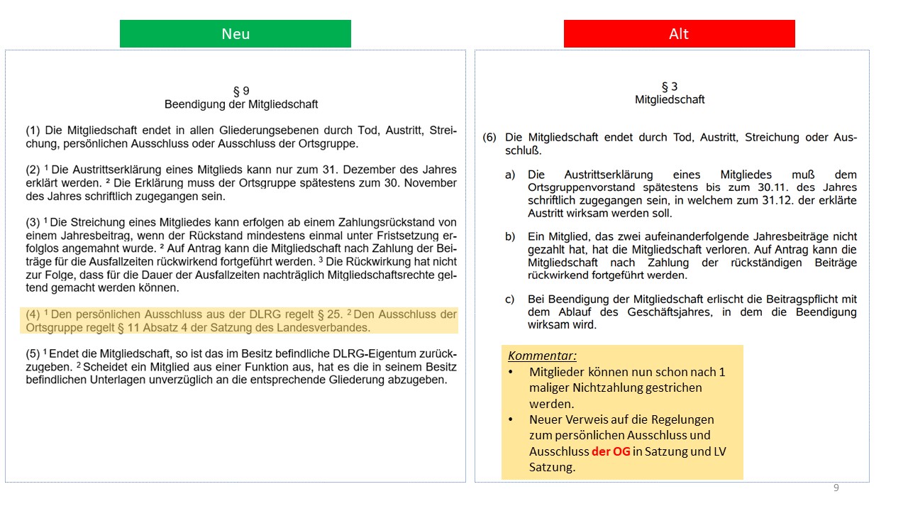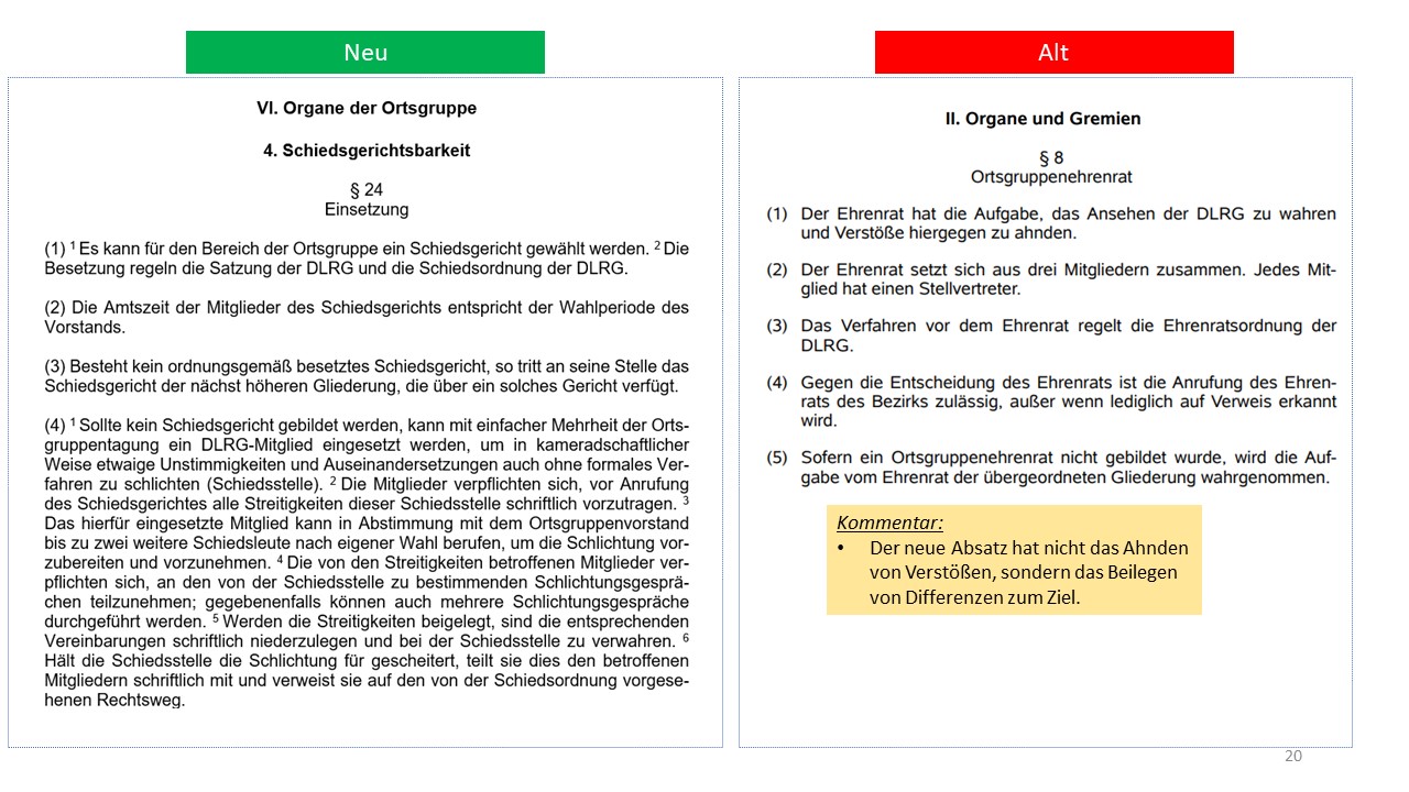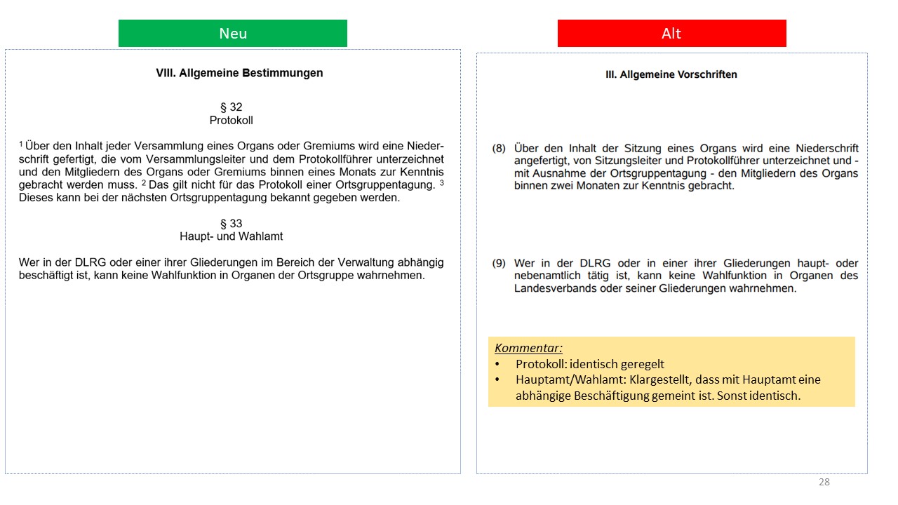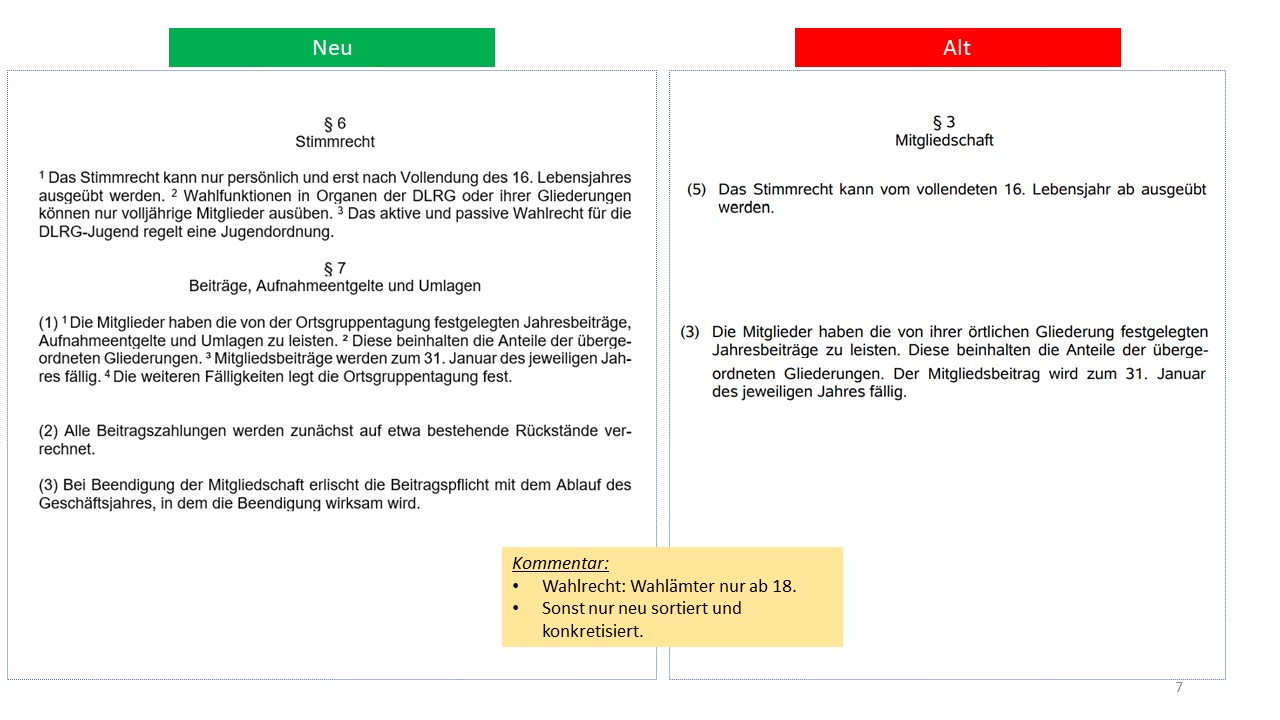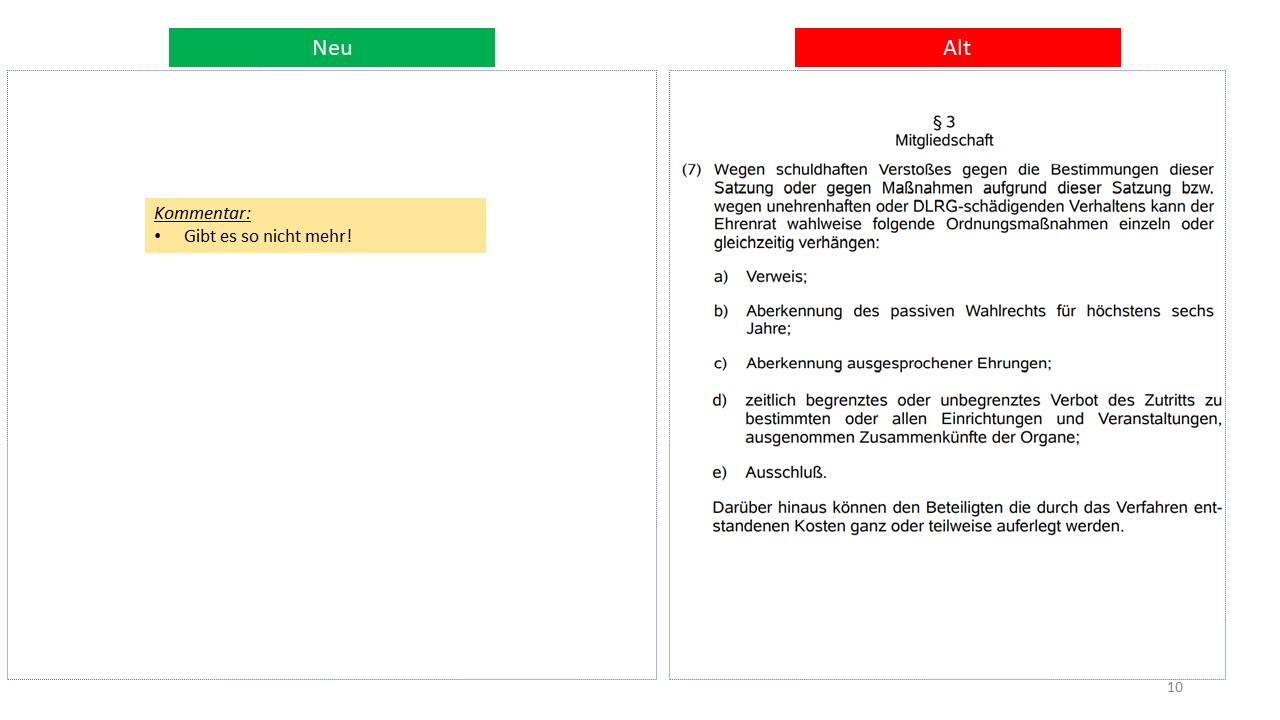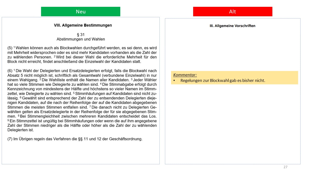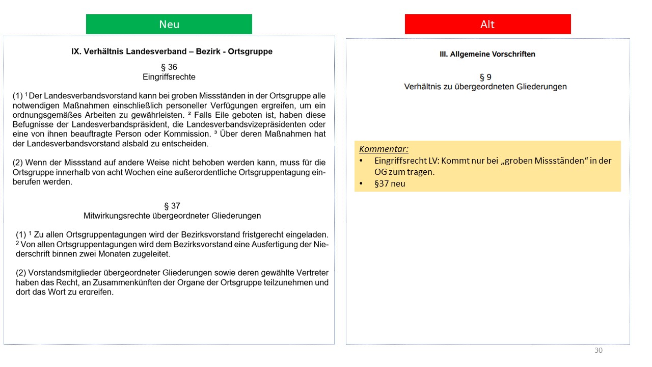 Hier der detailierte Vergleich der alten Satzung von 1995 mit dem Entwurf der neuen Satzung (weitestgehende Übernahme der aktuellen Mustersatzung des LV in der Version vom 20.06.2021)